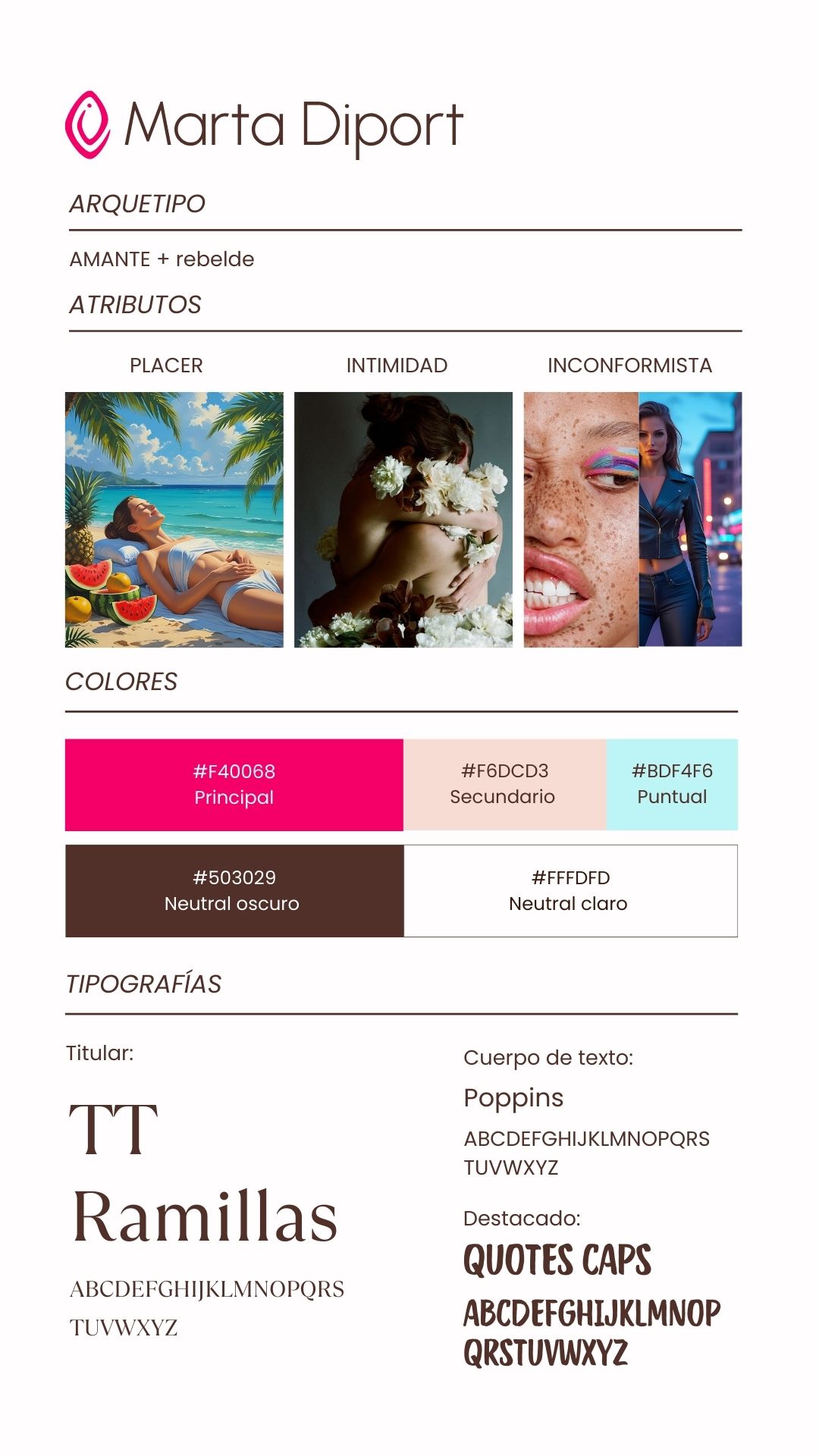Antes de la sesión, Marta completó un formulario inicial que nos permitió entender su punto de partida, sus bloqueos visuales y sus verdaderos valores de marca.