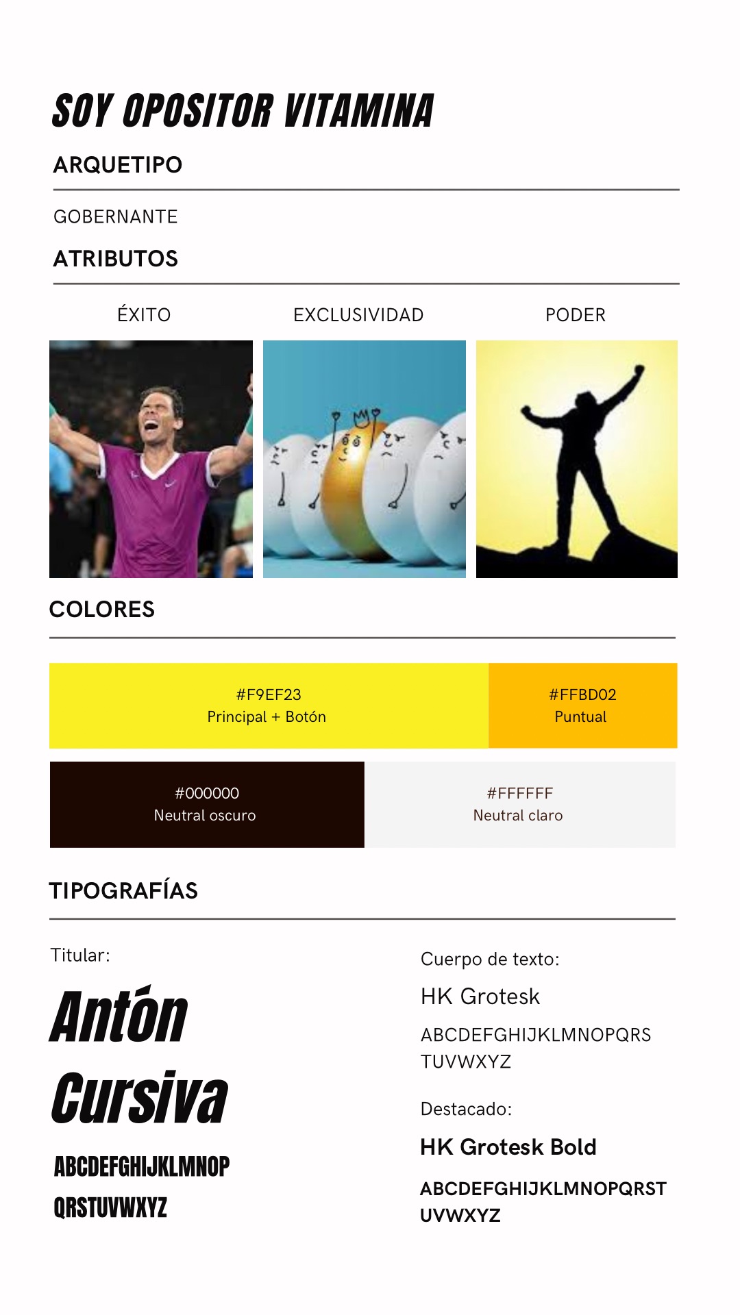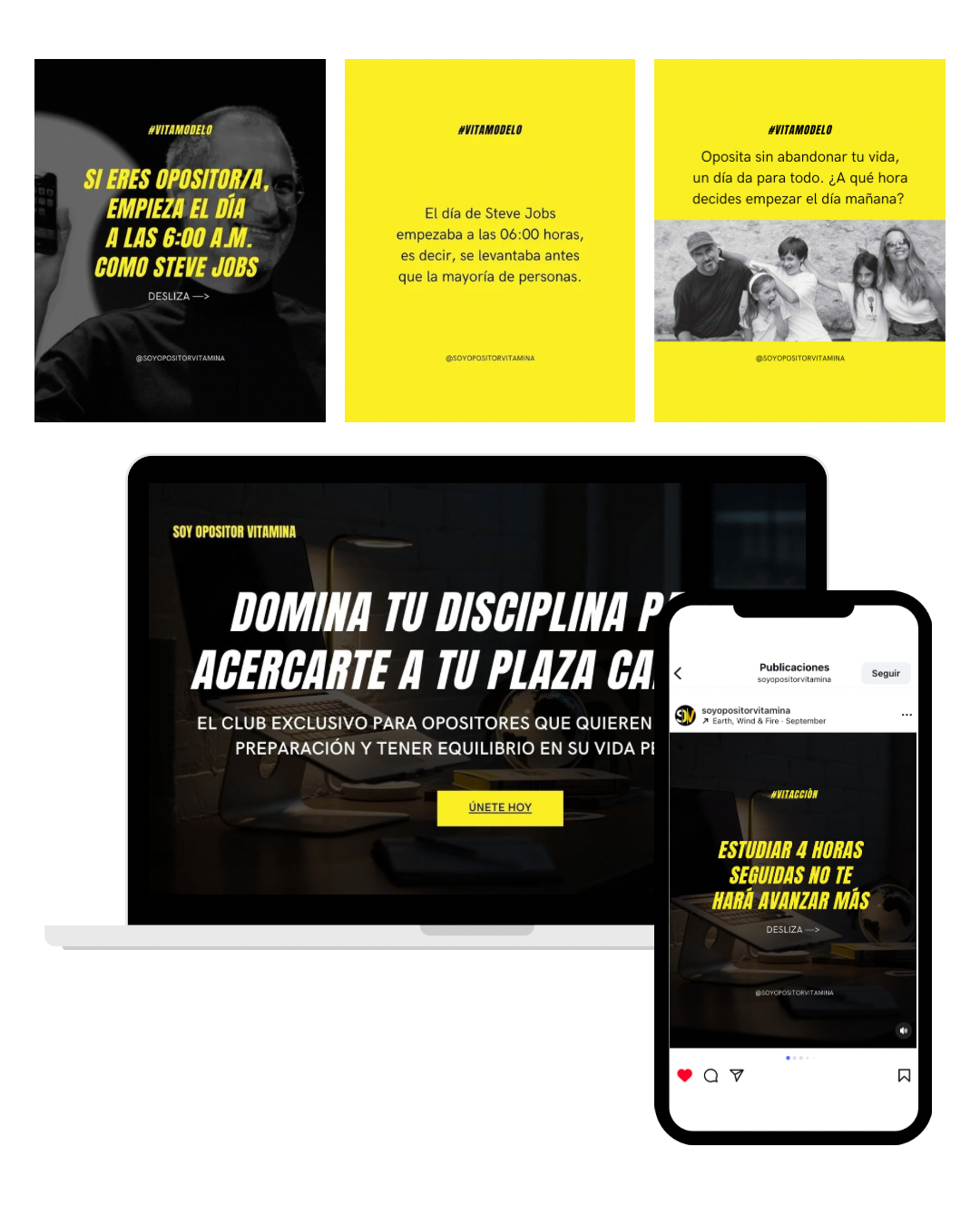 Conectamos con su visión renovada y definimos las bases de su identidad visual para lanzar su primer producto digital: Soy Opositor Vitamina.